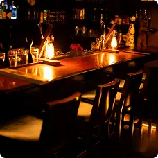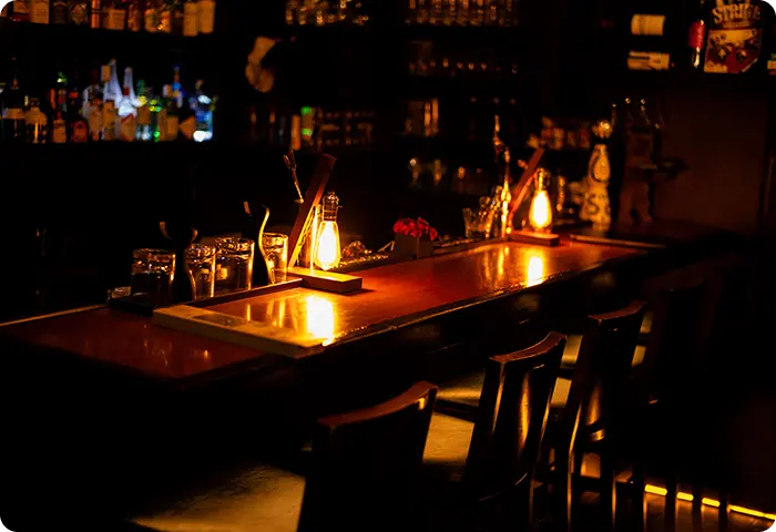 ほの暗い間接照明が映し出すカウンターでは、静かにグラスを傾けたい一人の夜や大切な人との語らいに最適です。